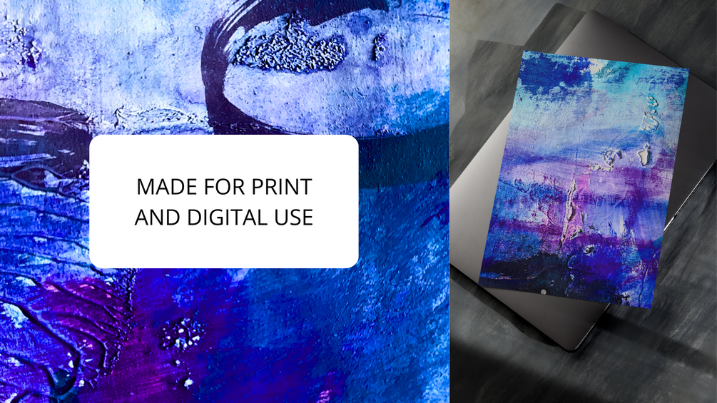 Hand painted abstract backgrounds with bold brushstrokes and textures in electric blue, purple, and pink.